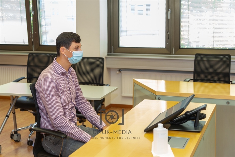 INNSBRUCK, AUSTRIA - JULY 13: The accused Emanuel Moser in the trial room during the Trial for fraud against 35 year olds through contribution to doping related to Dr. Mark Schmidt at Landesgericht Innsbruck on July 13, 2020 in Innsbruck, Austria.