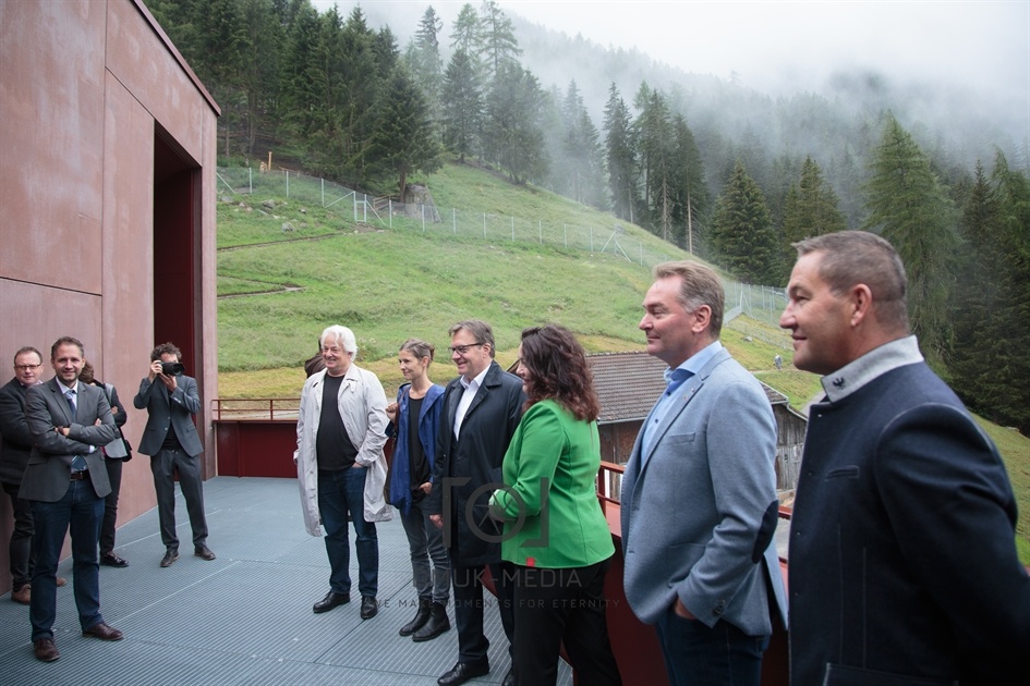 ST. LEONHARD IM PITZTAL, ÖSTERREICH - JULY 17: Landeshauptmann Günther Platter, Landeshauptmann Stellvertreterin Ingrid Felipe und Bürgermeister St. Leonhard im Pitztal Elmar Haid beim Besuch im Steinbockzentrum St. Leonhard im Pitztal in Schrofen 46 am July 17, 2020 in St. Leonhard im Pitztal, Österreich.