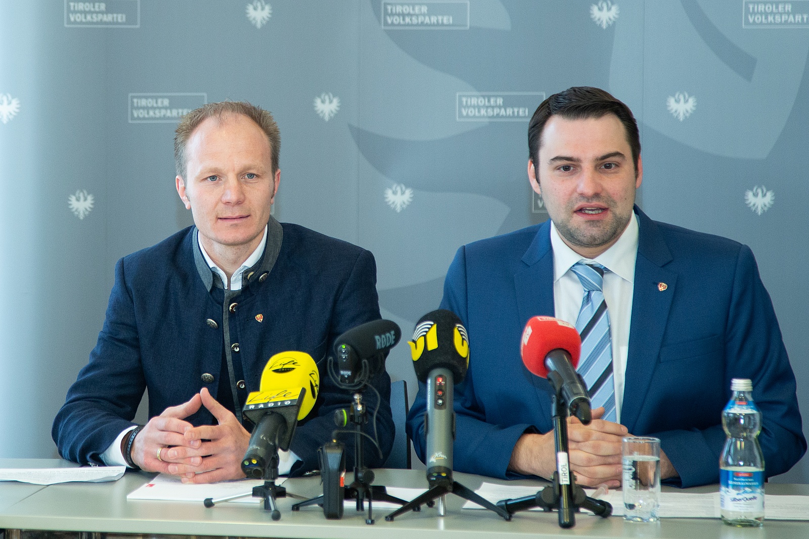 INNSBRUCK, STERREICH - JANUARY 31: v.l.n.r. Gemeinderat Johannes Anzengruber und Gemeinderat Christoph Appler (VP) bei Der Stadtparteivorstand der Innsbrucker Volkspartei hat weitreichende Weichenstellungen beschlossen im Presseraum der Tiroler Volkspartei am January 31, 2020 in Innsbruck, sterreich.